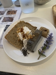 写真の米粉のシフォンも黒ゴマのバスクチーズケーキも